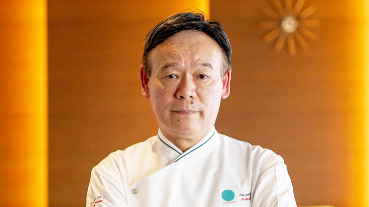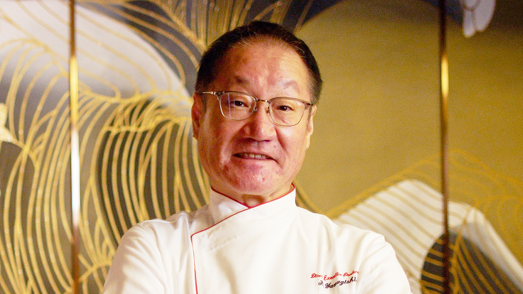 国内外の名店で豊富な経験を積み、「美味しく、健康的な食事」を追求する料理人。パリのアピシウスやデュケノワでの修業を経て、国内の高級ホテルで総料理長として活躍。2016年に厚生労働大臣表彰とフランス農事功労章シュバリエを受章。直近では7年間にわたりレセプションスペース”会”の総料理長を務めた。