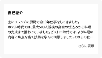 あらゆるジャンルや年齢層の料理人とつながり、普段出会う機会の少ないシェフとの新しい出会いが生まれます。つながった仲間とは一緒に働くことも可能です。さらに、交流会や勉強会のお知らせが届き、キャリアの幅を広げながら仲間との絆を深めることができます。